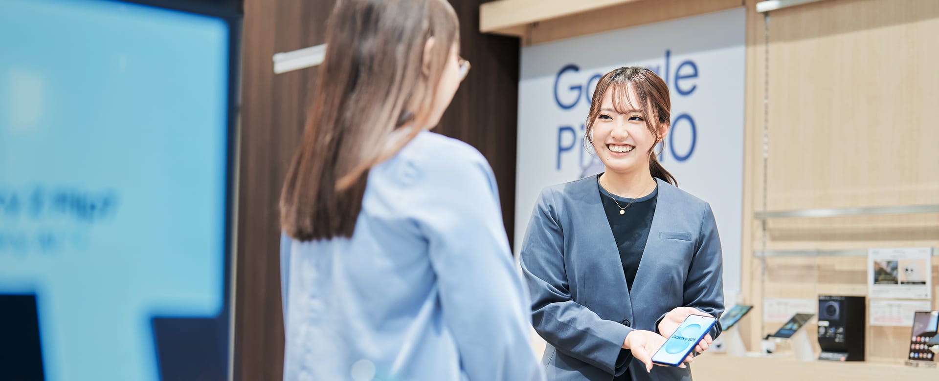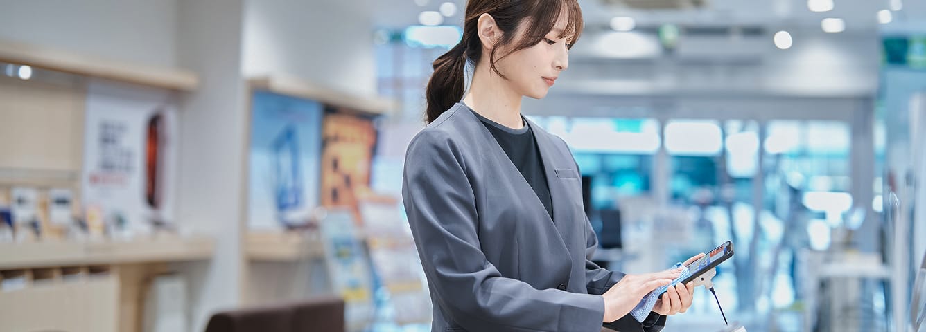 お客様のライフスタイルをヒアリングし、最適な商品・サービスを提案します。取り扱う商材は、スマートフォンや料金プランにとどまらず、インターネット回線や電気といったライフライン、キャッシュレス決済など多岐にわたります。